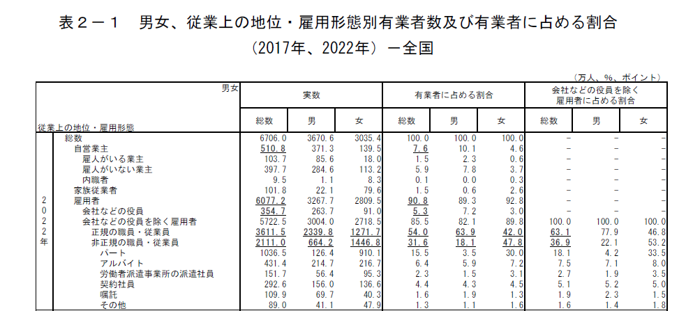 総務省が発表している『就業構造基本調査』に記載されているデータです。